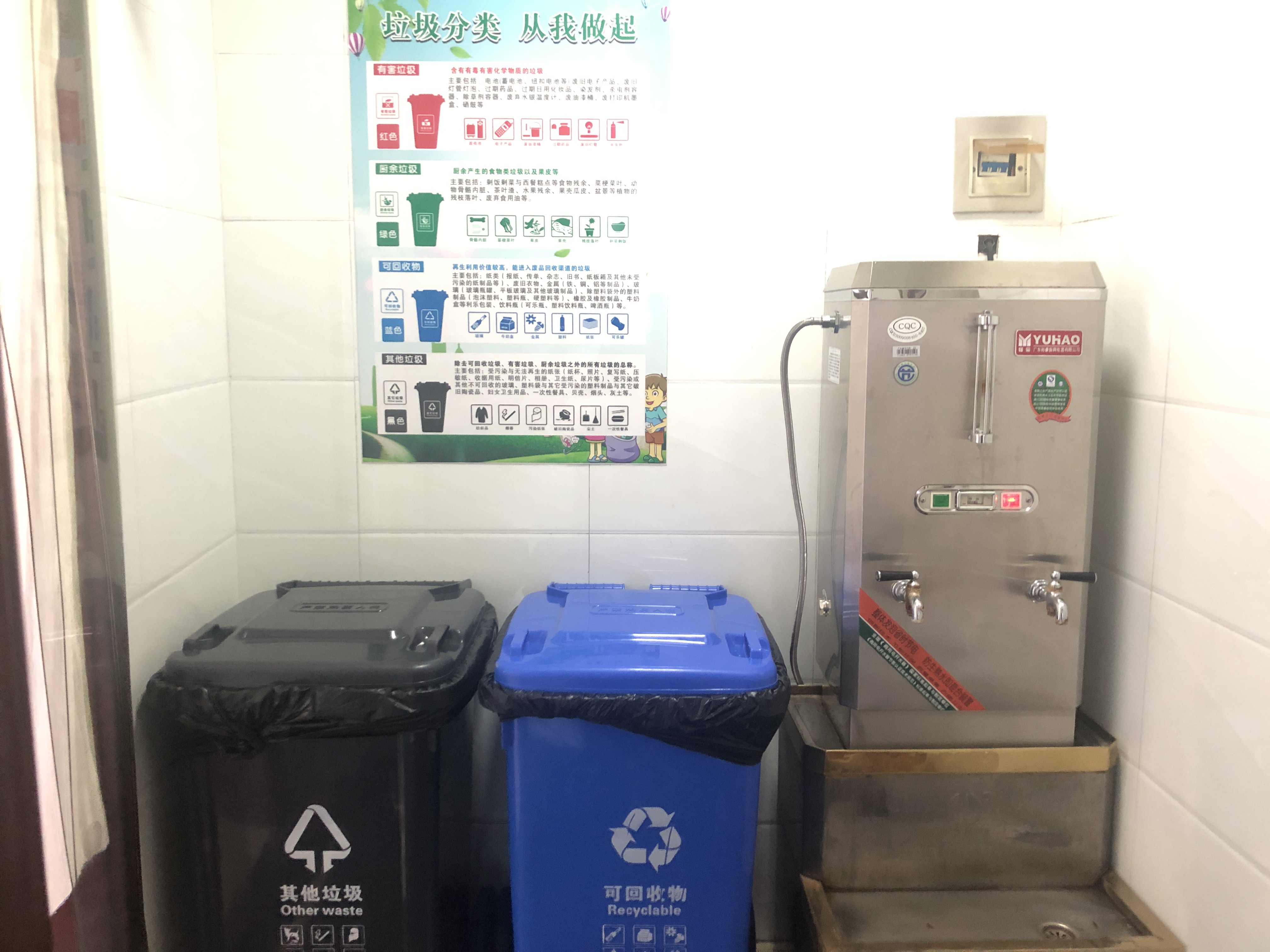 為進一步提高全體員工對垃圾分類的正確認識,倡導員工逐步養成垃圾分類投放的良好行為習慣,在工作生活中自覺做到“垃圾分類,從我做起”,從八月開始,綜合辦公室多措并舉,落實垃圾分類相關工作。組織部門人員進行系統、全面的垃圾分類知識培訓;在食堂門口、辦公區、樓道等公共場所粘貼垃圾分類宣傳海報;在用餐區域懸掛垃圾分類橫幅標語;各樓層設置不同的分類垃圾桶及分類標識;樓層公共區域由保潔人員負責,定時巡查垃圾投放情況,負責垃圾分類的日常管理監督等。