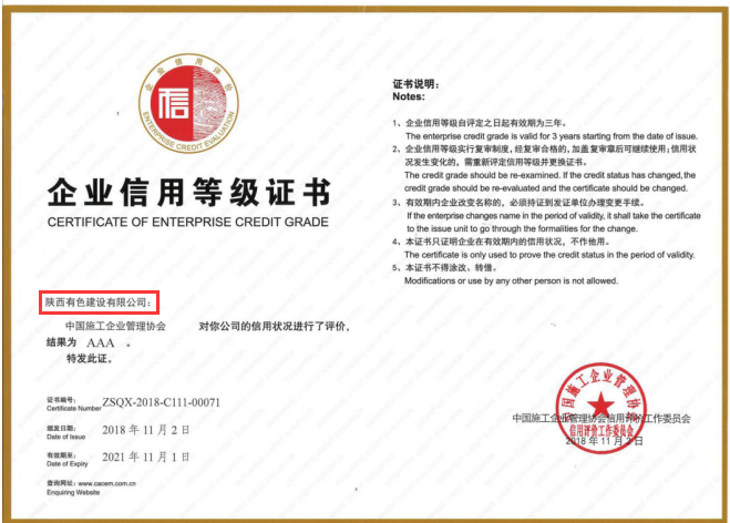 近日,中國施工企業(yè)管理協(xié)會印發(fā)了《關(guān)于公布2018年度工程建設企業(yè)社會信用評價結(jié)果的通知》(中施企協(xié)字〔2018〕57號),陜西有色建設有限公司被評為“2018年度工程建設企業(yè)社會信用評價AAA級信用企業(yè)”。這是繼公司連續(xù)榮獲省建協(xié)“AAA”信用評級后,獲得的又一殊榮。