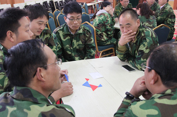 本次拓展訓練有幾個鮮明的特點。首先,參加拓展訓練的成員均為公司中層以上領導崗位人員,他們溝通協(xié)調(diào)能力強,團隊相對穩(wěn)定,經(jīng)過多年的工作配合,默契程度較高;其次,在結構層次上主要是以公司和生產(chǎn)單位的負責人為主,參與人員遍布公司各個核心管理崗位,他們位居要職,長期緊張工作,屬于思維可能陷入某種慣性模式的管理者。再次,參加培訓人員的生活經(jīng)驗相對豐富,社會閱歷較多,且大部分領導人在平日的工作中屬于決策型的角色,目光敏銳,反應也迅速、準確。