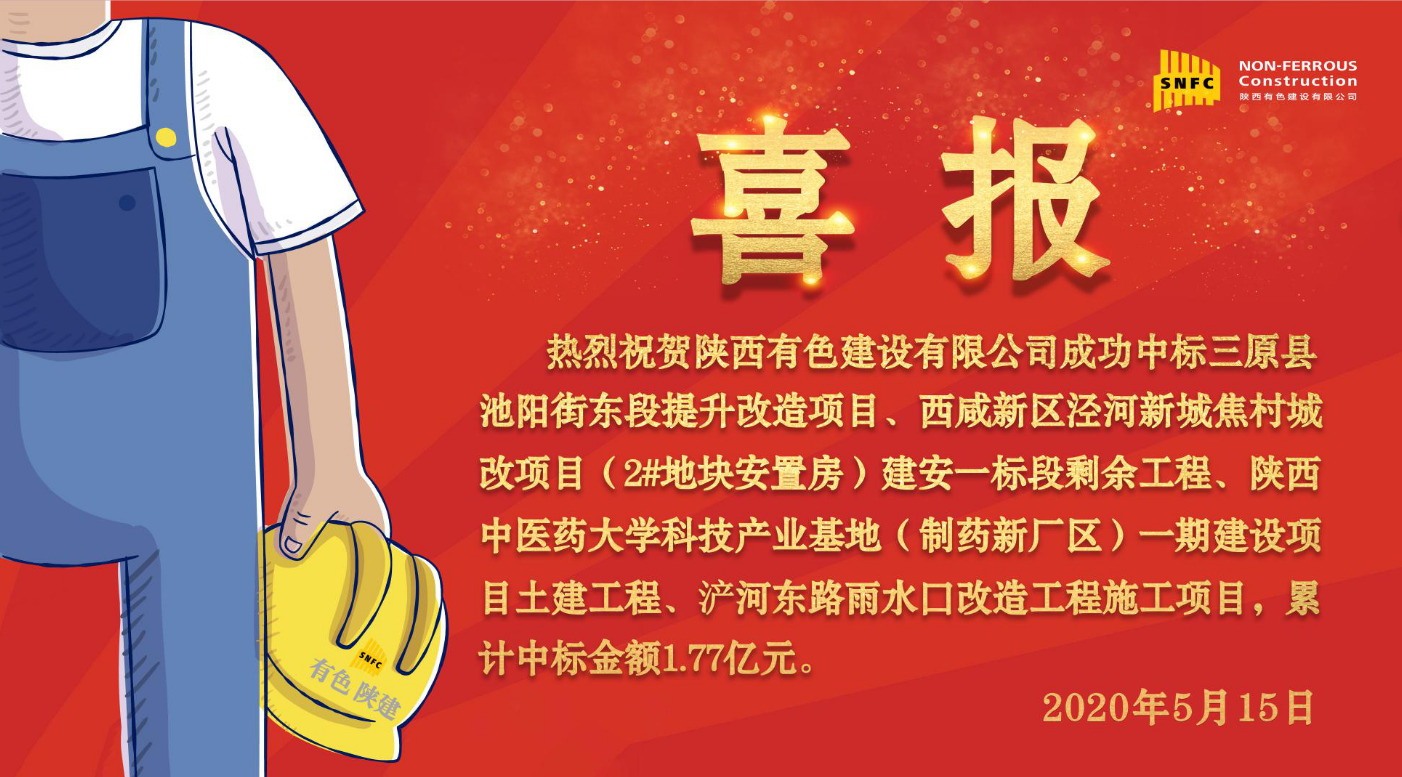 三原縣池陽街東段提升改造項目、西咸新區(qū)涇河新城焦村城改項目(2#地塊安置房)建安一標段剩余工程、陜西中醫(yī)藥大學科技產(chǎn)業(yè)基地(制藥新廠區(qū))一期建設(shè)項目土建工程、浐河東路雨水口改造工程施工項目接連中標,累計中標金額1.77億元。